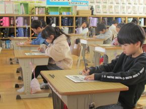 (左)今日は全学年学力テスト(国語、算数)を行いました。時間いっぱいまで集中してがんばりました。