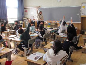 (左)1年生外国語活動の様子です。2人のALTの先生を迎えて、さまざまな生き物を英語で何と言うか、ゲームを取り入れながら楽しみました。