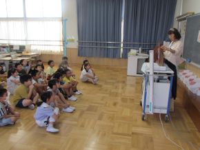 (左)今朝、1~3年生と特別支援学級で読み聞かせがありました。「ちいさなにわ」さん、いつもありがとうございます。