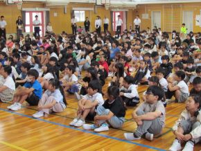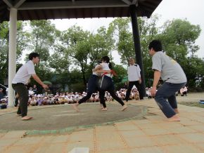 今日はすもう大会横綱戦三吉小場所を行いました。どの学年も熱戦で手に汗握る取組でした。勝負なので、勝ち負けはつくのですが、負けてしまった子で涙を流す子もたくさんいて、それだけ「一生懸命に全力で戦った」証拠だと感じました。まわり子の「ガンバレ!」という応援もすごくて、全校がとても盛り上がった時間でした。すばらしかったです!!!!! |