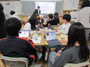 (右)2年生の様子です。ICT支援員の方を迎え、タブレットを活用し、「三角形のひみつ」を探りました。 |