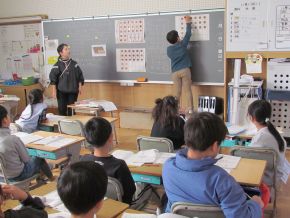 (右)4年生外国語活動です。今日は、物が複数になったときの表現の方法を学びました。 |