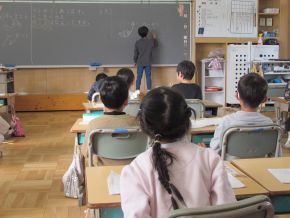 (右)5年生算数の様子です。問題を解くために、友達と教え合いながら進めていきました。