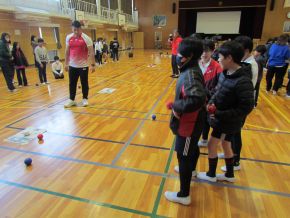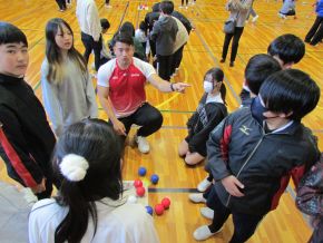 最後に、湯上選手と一緒にボッチャを楽しみました。