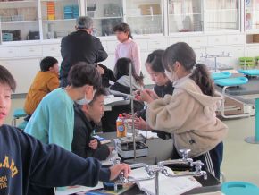 (右)4年生理科です。水の温まり方について、実験をとおして学びました。 |