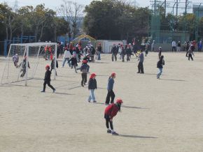 (右)体育委員会主催の「ケイドロ」がありました。今日は4~6年生の子供たちが一緒にケイドロを行い楽しみました。 |