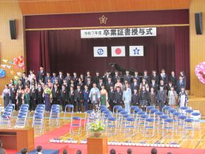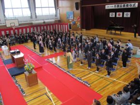 卒業証書授与、在校生からのおくることば、卒業生お別れのことば、校歌など、一つ一つに心が込められていて、だれもが感動を感じられる卒業式でした。