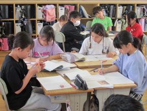 (左)登校すると6年生が1年生のお世話をしてくれています。とても丁寧に教えてくれているので、1年生もスムーズに朝の準備を行うことができています。6年生のみなさんありがとう。