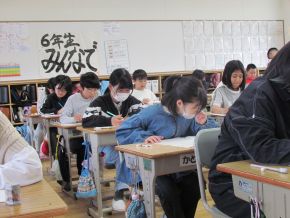 (左)今日は全国学力学習状況調査ということで、6年生が国語と算数のテストを受けました。どの子も時間いっぱいまで一生懸命にがんばりました。おつかれさまでした。