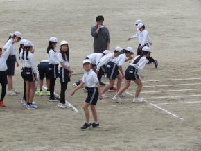(右)5年生体育です。50m走を行いました。みんな自分の力を出し切ろうと精一杯走りました。 |