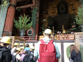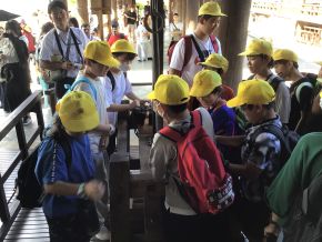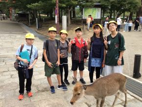◆2日目は、京都の旅館を出発し、奈良公園へ 行きました。大仏殿を見学した後、班ごとに自分 たちが計画したコースを見学しました。鹿に鹿せん べいをあげました。その後、法隆寺へ行き、 昼食後に五重塔などを見学しました。 ◆6年生全員が参加し、無事に全員が元気に 帰ってくることができました。小学校生活での大きな 思い出の一つになりました。 |