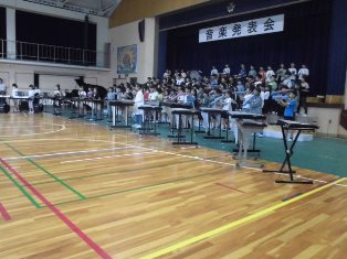 4、5、6年生の児童全員が体育館で発表を聞きました。 |