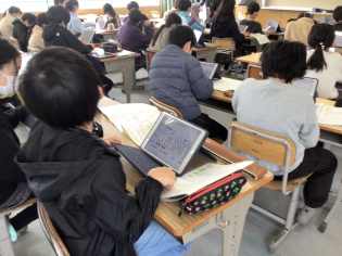 みどりっ子フェスタの招待状をタブレットで一生懸命に作成していました♪