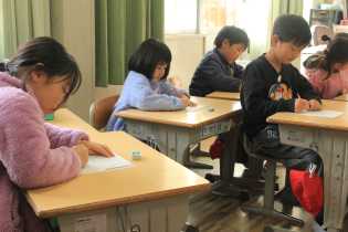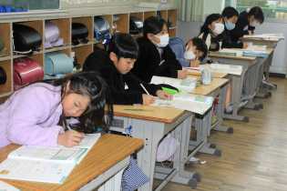 書写の学習の時間には、来年に行われる書き初め大会に向けて練習を進めています。6年生は、「満天の星」に取り組んでいます。手本をしっかり見て、筆遣いを意識して、丁寧に取り組んでいます。書き初め大会後、ホールに全学年の作品を展示いたしますので、子どもたちの成長を感じてください。 |