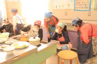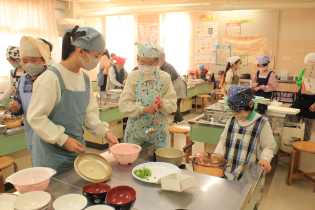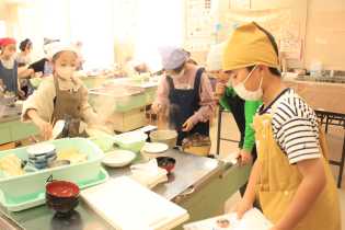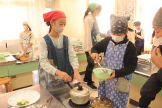 写真は、5年生の調理実習の様子です。ごはんと味噌汁を作りましたので、ご家庭でも一緒に調理してみてください。