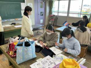 ひと言もしゃべらずに刺繍していて驚きました。小学校での家庭科の学習もあと少しで終わってしまいします。一針一針に、6年間の思い出を込めて刺繍しているようにも見えました♪ |
