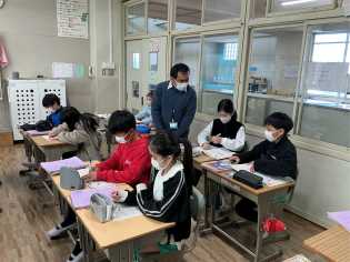 日差しの割には、少し冷たく感じる天候のもと、1年生は個別に縄跳びの練習に励んでいました。4年生はクラス全員で大繩にチャレンジしていました。どちらのクラスも跳べた時には喜びを分かち合い、跳べなかったときには励ましの声が飛び交っていて春の日差しのように温かい雰囲気で活動していました♪ |