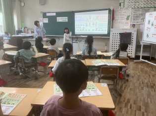 安全に登下校するための安全教室を行いました。1年生にとっては初めての出前授業となりました。自分の命を自分で守ることのできるみどりっ子に成長していくことと思います。 |