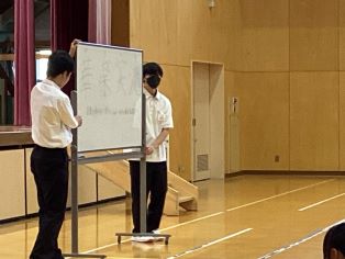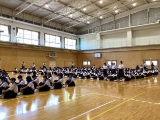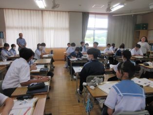 授業参観、ありがとうございました。4時間目には、学校保健委員会を行い、スクールカウンセラーの安食さんからレジリエンスを高めるための方法について講演をいただきました。ぜひ、家庭でも話題にしていただきたいと思います。また、保健委員の生徒が活躍した時間でもあり、終了後には、その頑張りをたたえ合う姿もありました。 |