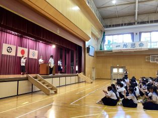 いよいよ学校が始まりました。本日は全校集会と避難訓練が行われ、集合して静かに話を聞く機会がありましたが、夏休み前同様、どの学年も落ち着いており、話を聞く姿勢も真剣そのもので、人として大切な力が確実に身に付いてきていると感じました。 |
