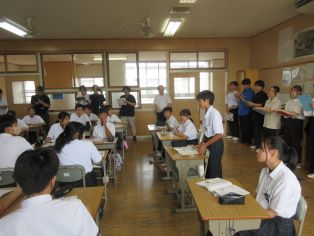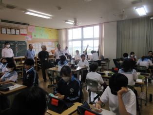 今日の午後には、学校運営協議会が行われ、6名の委員の皆様に、子どもたちの授業を見ていただきました。自席で落ち着いて自分の考えをまとめたり、ペアやグループの生徒と話し合ったりしながら、授業に集中している様子が見られ、委員の方から褒めていただきました。また、生徒会役員との懇談会も行い、地域の要望や生徒会の思いを交流することができ、有意義な時間となりました。 |