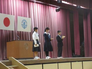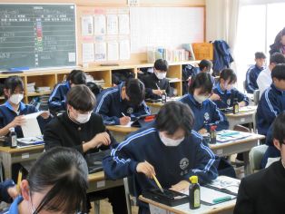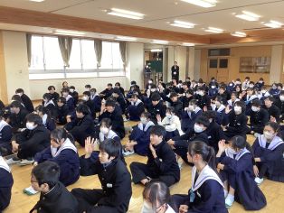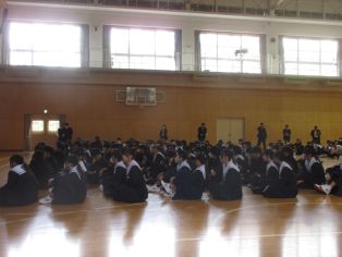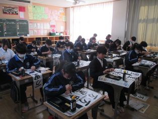 | 生徒たちの元気な声が三好丘中学校に帰ってきました。1時間目の集会では、校長先生から「目標を宣言することの大切さ」について話がありました。また、生活委員からは、正しいあいさつを校内に広めていこうということで、デモンストレーションを使った発表が行われました。3,4時間目には校内競書会も行われ、気持ち新たに新しい年に臨む姿勢が伺える一日となりました。これからの生徒の姿勢に期待したいと思います。 |
