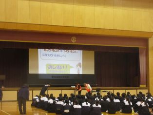 | 6限目に3年生を対象に、警察の方を講師にお招きして薬物乱用防止教室を行いました。動画を見ながら薬物を使用する怖さや薬物の誘いを断ることの大切さについて学ぶことができました。今後の学校生活に生かしてほしいと思います。 |
