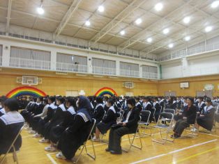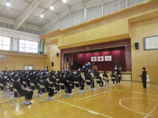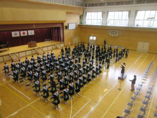 | いよいよ今週の金曜日に卒業式が迫ってきました。3年生は証書の受け取りの確認や合唱練習を行いました。明日は卒業式の予行練習になります。在校生とともに、本番を意識した姿を期待します。 |