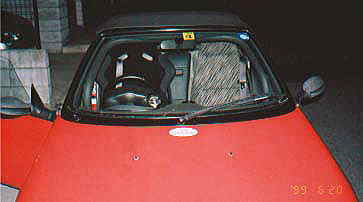 画像左は、助手席を取り外し、内装を外してカーペット下の