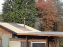 横桟を固定しました。横桟は再利用材です この上に最終の屋根材を貼ります。 |