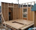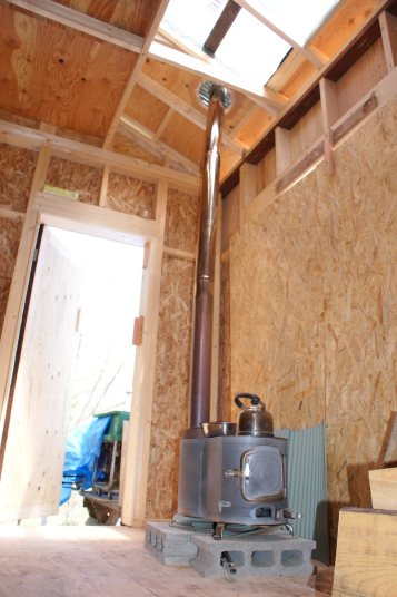 床の下地板を張って、壁板を立て屋根の下地板を張りました。 |