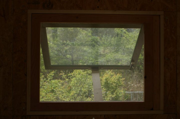 玄関に自作ドアを取り付け、西側の窓枠を付けました。 | |||||
