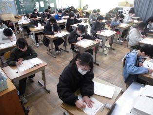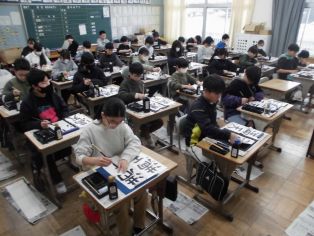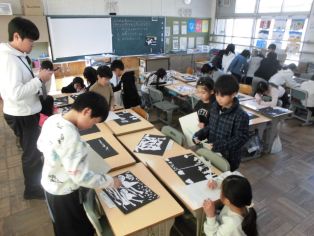 1、2時間目に校内書初め大会がありました。