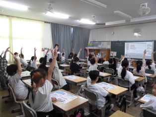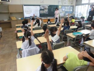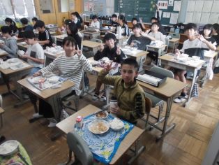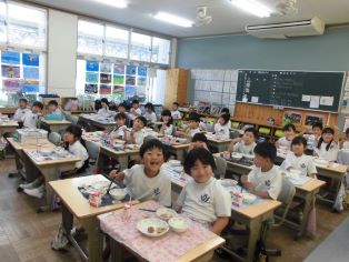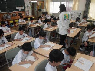 1年生 <食に関する指導> 栄養教諭の方を招き、給食について考えました 給食センターでの給食の調理や、片付けまで知ることができました。 最後にがんばりカードできょうから3日間の給食でがんばることをそれぞれが決めました。 |