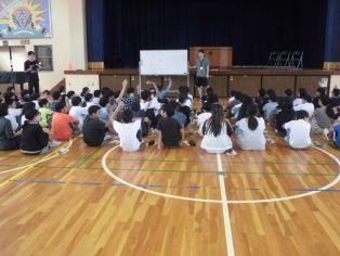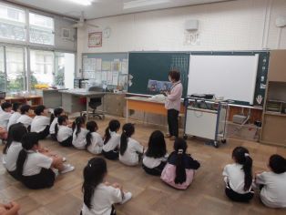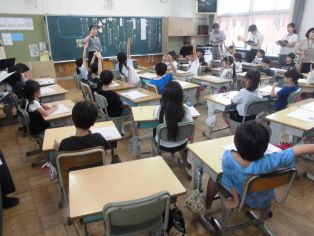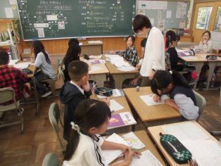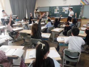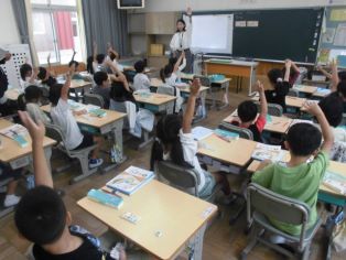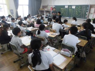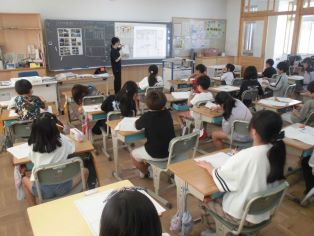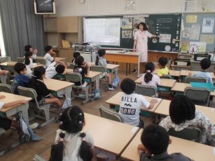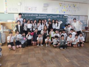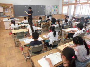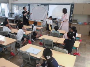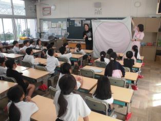 4年生のクラスの外国語活動の授業にスペシャルティーチャーとして参加しました。 自己紹介をしたり、質問を受けたり、一緒にゲームに参加したりしました。 折り紙づくりの活動をし、児童からプレゼントをもらいました。 |