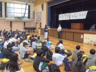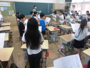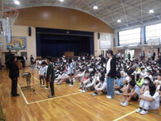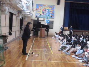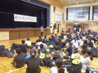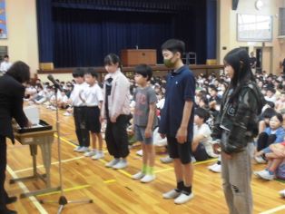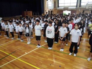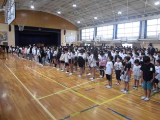 校長先生の話 後期にがんばることや次の学年の準備期間であることなどの話がありました。 最後に全校で校歌を歌いました。 |