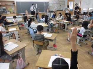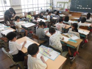 10月1日(水) 講師の先生を招き、研究授業がありました。 2年生 国語 ニャーゴ 第六場面のねずみとねこの気持ちを想像し、音読の工夫を考えよう |