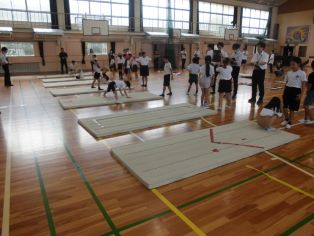 3年生 研究授業 体育 めざせ!回転マスター 開脚後転で美しく回転するために必要なコツを見つけよう |