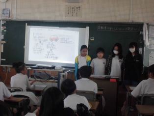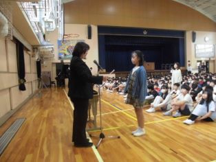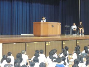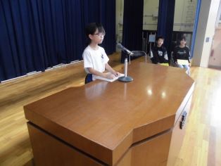 10月10日(金) 前期終業式 1、3、5年生の代表児童が前期の振り返りを発表しました。 |