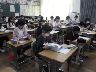 10月2日(木) 6年生 明日からの修学旅行に向けて、しおりを使って最後の確認をしました。 |