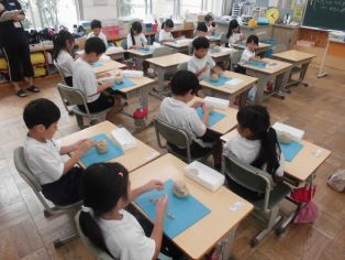 10月15日(水) 1年生 図工 ねんどうぶつといっしょにおさんぽしよう 粘土でいろいろな形をひねりだそう |