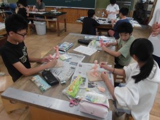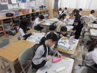10月16日(木) 6年生 図工 10年後のわたし 芯材に肉付けしていこう |
