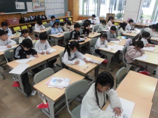 | 3年生 音楽 拍子の感じを生かしてえんそうしよう 外国語活動 アルファベットの大文字を自由に仲間分けしよう |