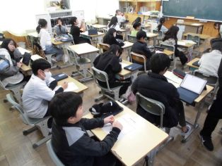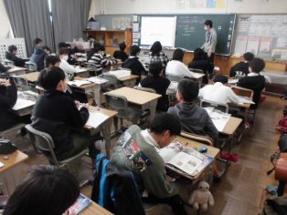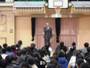 | 校長先生の話 冬休みの振り返りと新年のスタートについて話がありました。 11月に取材があったひまわネットワークの「ぼくらの学び舎」の番組を視聴しました。 |