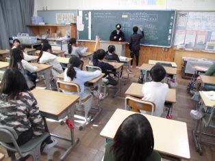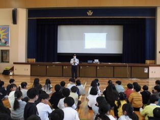 | 11月27日(木) 3、4年生 人権教室 市の人権擁護委員さんなどを招き、体育館で人権教室を行いました。 ビデオを見たり、クイズをしたりしながら自分を大切にすること、周りの人を大切にすること、思いやりの心をもつことなどを考えることができました。 |