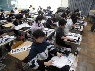 | 12月15日(月) 1年生 外国語活動 書写 かきぞめのれんしゅうをしよう |