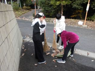 | 12月3日(水) 毎朝、6年生が正門付近の落ち葉拾いをしてくれています。 |