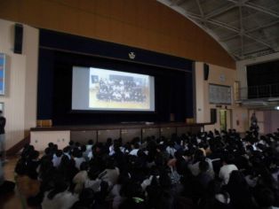 | ボランティア委員会から募金のお礼と報告がありました 最後に今月の歌を全校で歌いました。 |