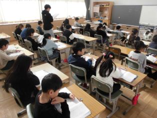 | 表彰がありました ・赤い羽根共同募金作品コンクール 書道、ポスター ・税に関する習字 ・防火ポスター ・わたしの好きな農作物図画コンクール 生徒指導の先生から冬休みの交通安全について話がありました。 |