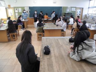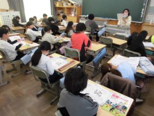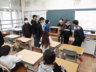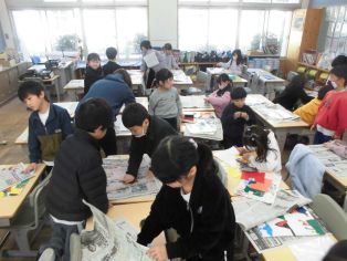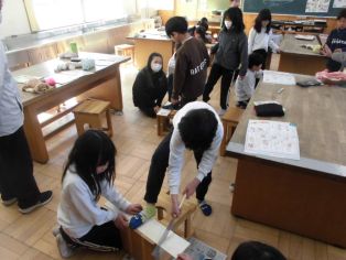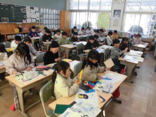 | 4年生 6年生を送る会の発表について確認しました。 図工 のこぎりで木を切って生活の中で使えるものを作ろう |